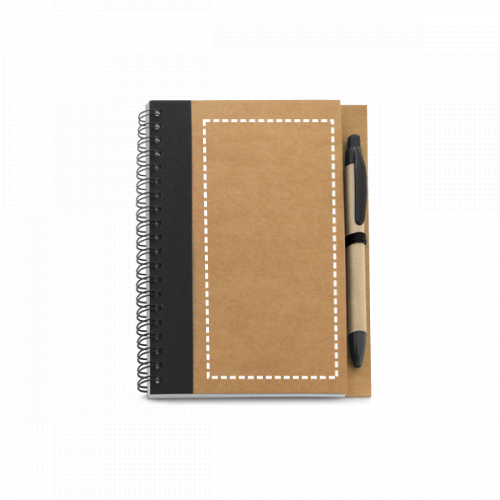 Notizblock B6 mit Hardcover aus 100% Recyclingpapier und 120 unlinierten Seiten (55 g/m²), aus 100% Recyclingpapier. Kugelschreiber enthalten aus 100% Recyclingpapier und ABS-Details. 130 x 177 mm