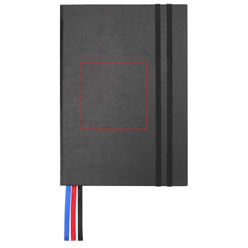Das Alder A5-Notizbuch besteht aus recyceltem Kunststoff in Lederoptik und enthält 192 Seiten cremefarbenes 80-g/m²-Papier im Tagesplaner-Layout – ideal zum Führen eines Tagebuchs und zur täglichen Organisation. Es ist mit zwei elastischen Bändern, drei farbigen Lesebändchen (schwarz, rot und blau), 200 kleinen Haftnotizen in fünf Farben (je 40 Stück) und einer praktischen Papierstecktasche für lose Zettel ausgestattet. Mit einem geprägten JournalBooks-Logo auf der Rückseite versehen und in einer weißen Papierhülle verpackt.