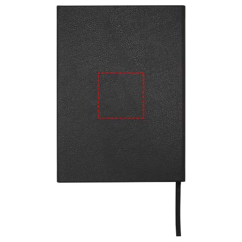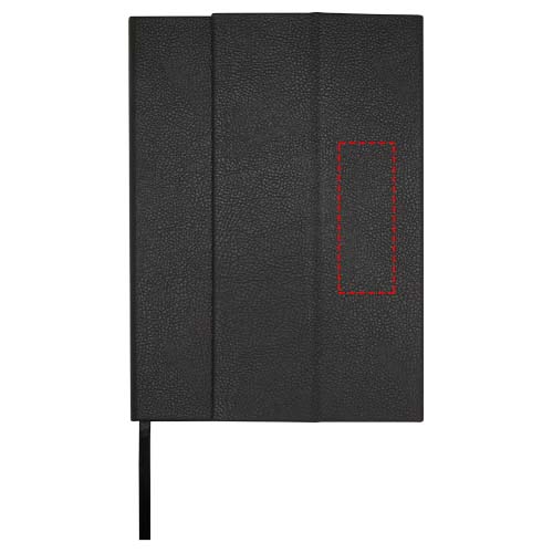 Das Alejandra A5 Hardcover Notizbuch besteht aus recyceltem PU-Kunststoff und RPET und umfasst 80 Blatt, liniert, aus cremefarbenem 70 g/m² Papier mit Lesebändchen und erweiterbarer Tasche.