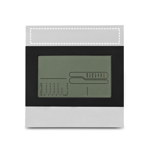 Multifunktionale Schreibtisch-Wetterstation mit großem Display. Nützliche Informationen jederzeit verfügbar für eine praktische und intuitive Alltagskontrolle.Material: ABS und AluminiumDisplay: LCDFunktionen: Uhr, Wecker, Kalender, Thermometer und HygrometerInklusive: 2 AAA-BatterienLieferung: weiße Geschenkbox 130 x 130 x 19 mm