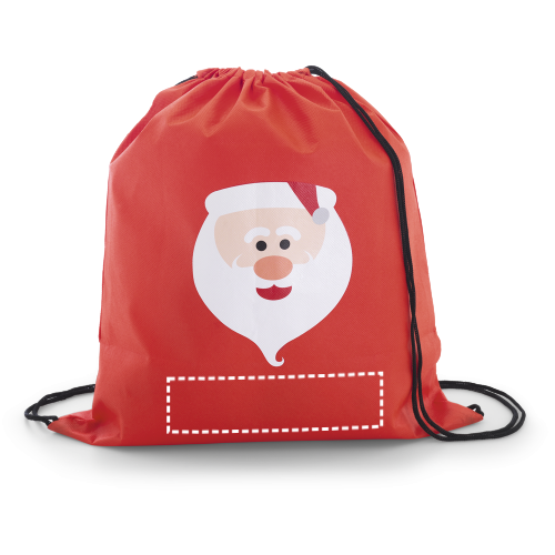 Turnbeutel aus Non-Woven (80 g/m²) mit bedrucktem Weihnachtsmann. 300 x 350 mm