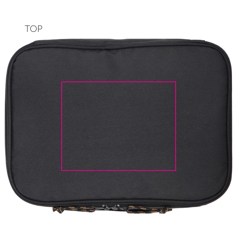 Geräumige, stilvolle und sportliche Kühltasche aus grünem rPET-Material. Schöne Details in Beige und Schwarz. Praktisch mit einem Griff und einem verstellbaren Schultergurt.